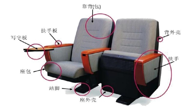 禮堂椅,多數(shù)由椅座、椅背、扶手和站腳四部分構(gòu)成。一般情況下站腳和扶手結(jié)為一體構(gòu)成牢固安裝的扶手架。組成結(jié)構(gòu)一般為鋼木結(jié)構(gòu)或鋼塑結(jié)構(gòu)。結(jié)構(gòu)示例:1.站腳----分...